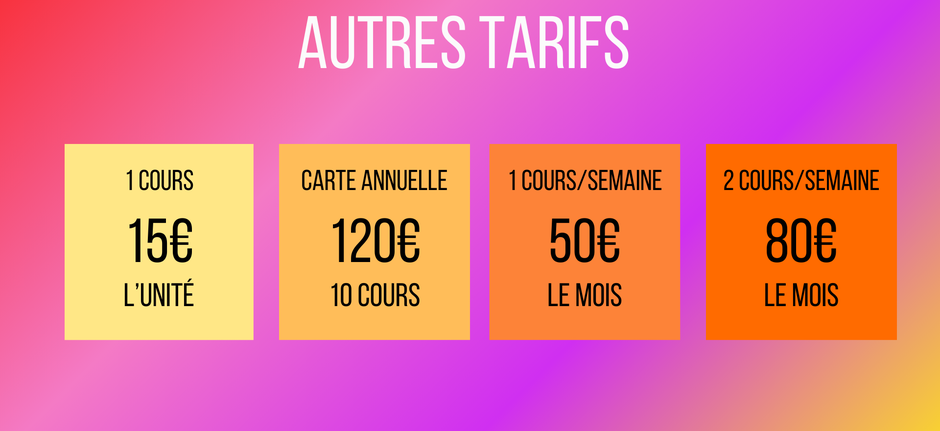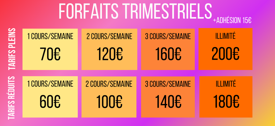 Les forfaits peuvent être mensualisés et payables en 10 chèques maximum d'un montant égal pour les inscriptions réalisées jusqu'à mi-octobre (le dernier chèque encaissé en juillet au plus tard). Les tarifs proposés tiennent compte de l'arrêt des cours pendant les périodes de vacances scolaires.